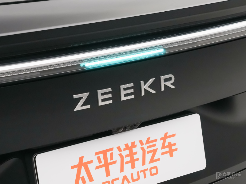 车尾造型给人一种宽体低趴的感觉,毕竟宽高比达1.12,搭配海岸线贯穿LED尾灯,灯体嵌入54,894个钻石型面,采用630nm波长超红光技术。最后极氪品牌英文依旧设置在尾部中央。