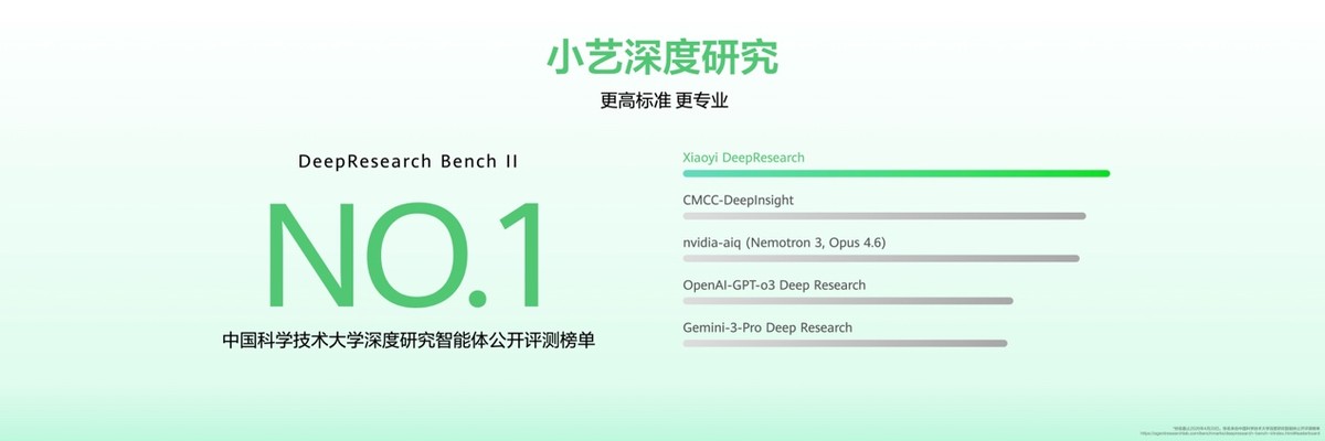 系统性报告生成。当你需要做行业分析或科研探索时,小艺深度研究能模拟行业专家思维,生成系统性的分析报告。更猛的是,小艺深度研究最近直接屠榜——在Deep Research两项公开评测中拿下双榜第一,击败了OpenAI-GPT-o3、Gemini-3-Pro等一众国内外竞品。评测把研究能力拆成“搜得全、想得深、讲得清”三个维度,小艺在“讲得清”这一项上得分高达91.12,意味着它不止能查资料,更能把结果整理得明明白白。