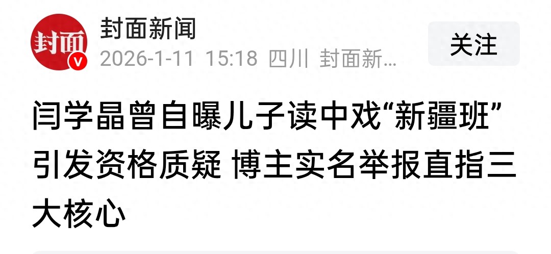 这就有意思了,中央戏剧学院发布声明,说闫学晶儿子不在新疆班,但是闫学晶自己却说儿子上了新疆班。真相只有一个,到底谁在说谎?或者说到底谁在故意掩盖事实?