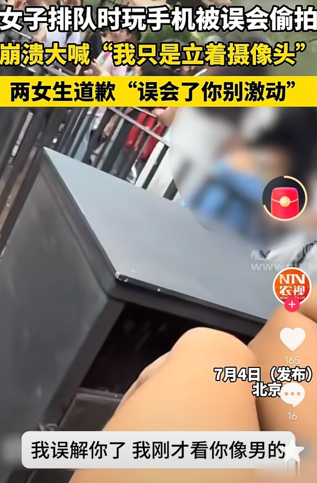 2025年6月30日,北京某景区,一名黑衣短发女子被两名女性游客怀疑偷拍,以致情绪失控引发围观,而两名女游客给出的解释是:我以为你是男的……