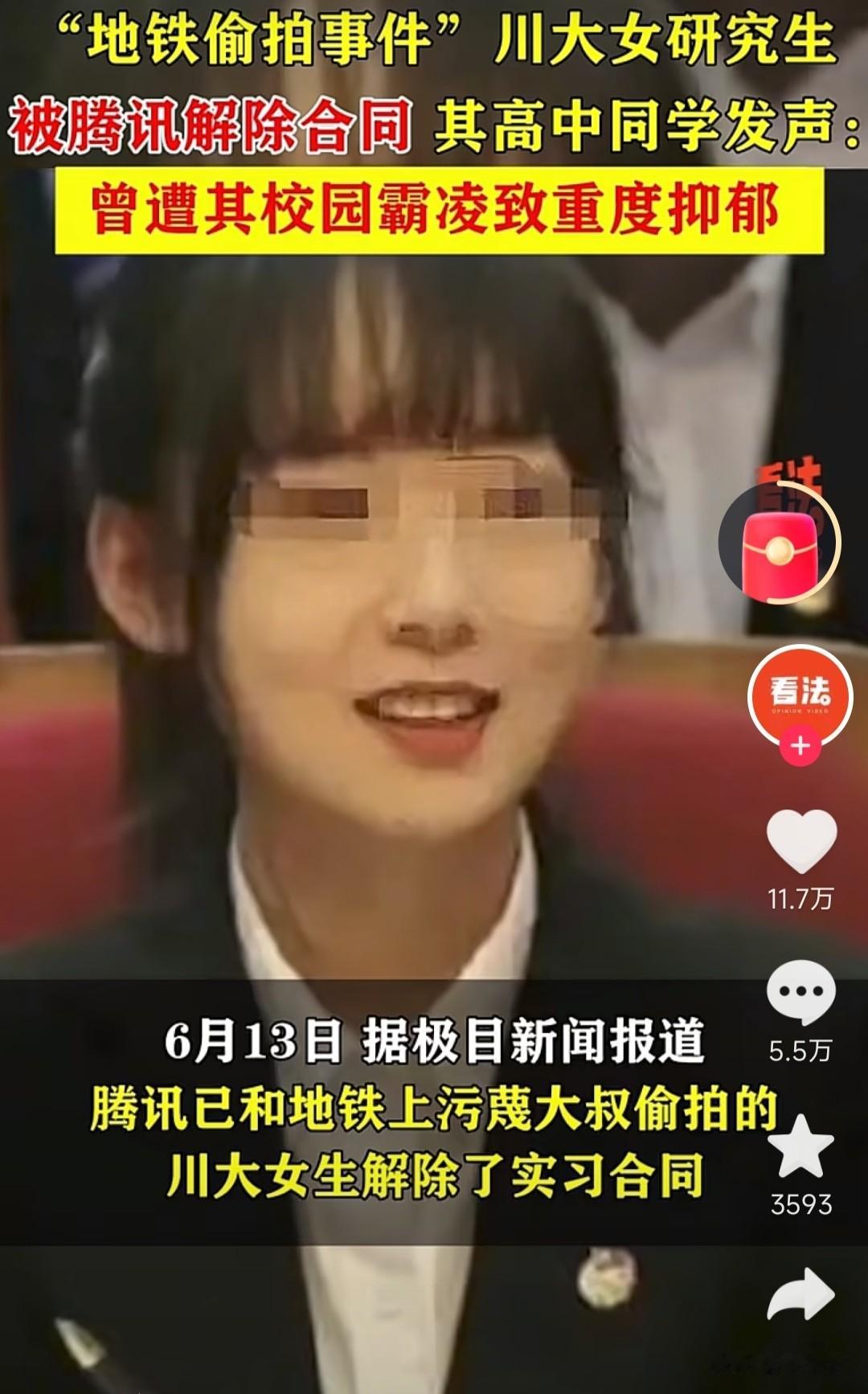直到事件发酵闹大,自己也被腾讯公司解除实习合同,她才出来发布声明道歉。