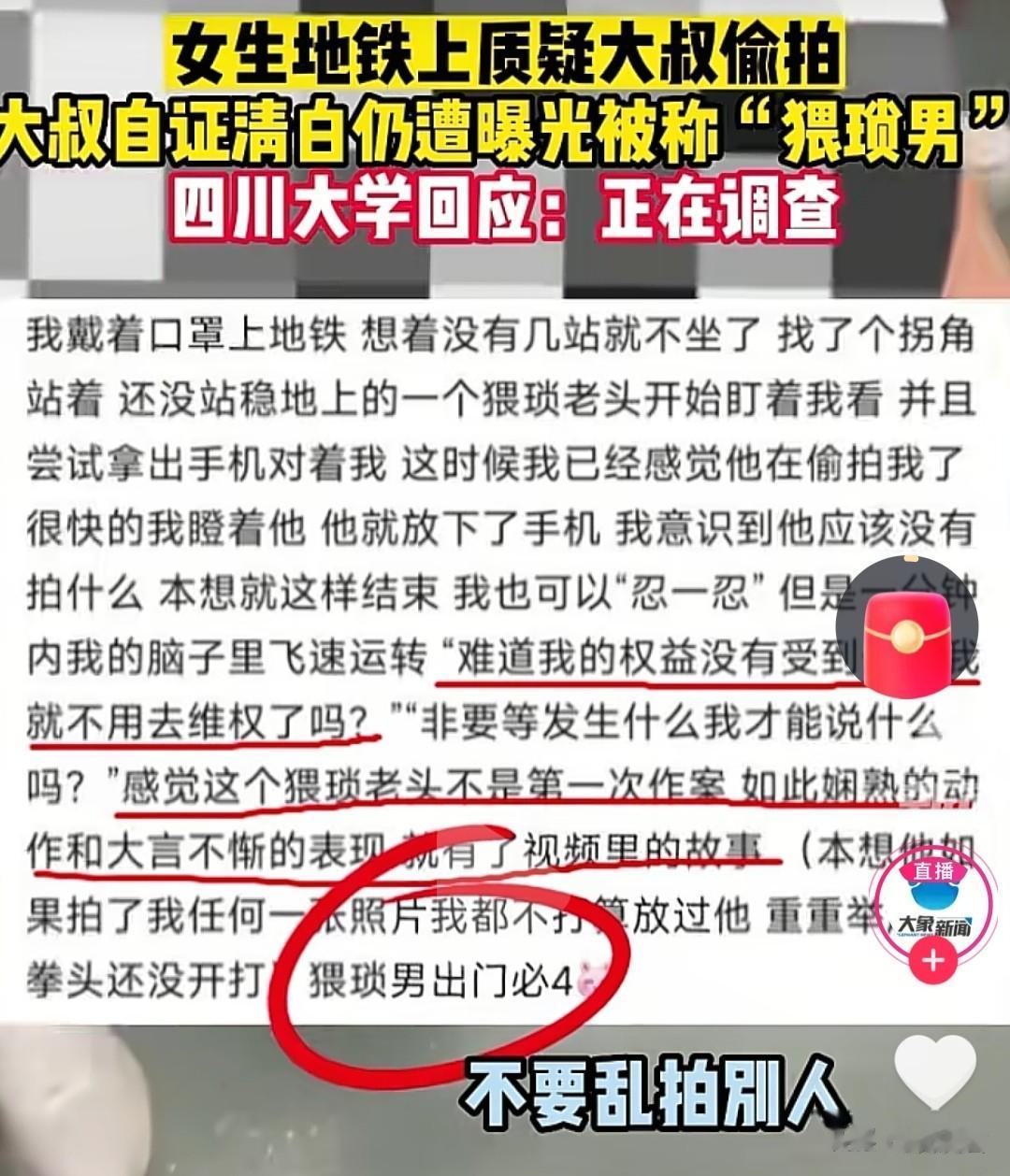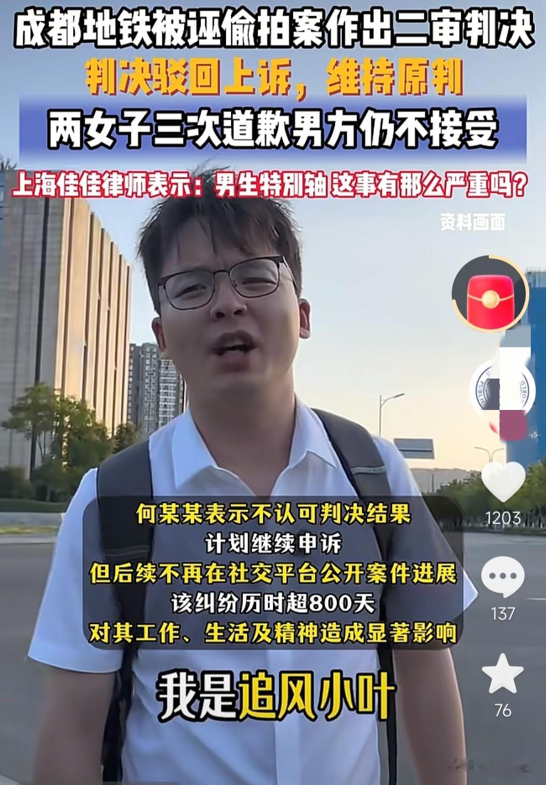 比如“2023年四川大学某女研究生地铁误会大叔偷拍”事件,比如“追风小叶”事件。