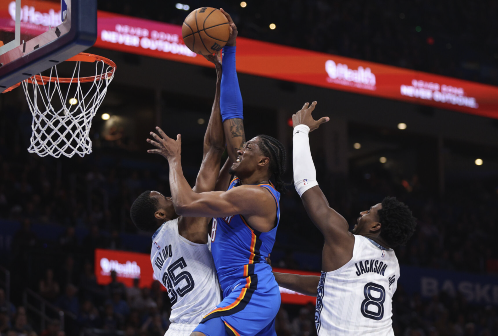 灰熊上一场比赛惨败太阳,由于球队后场球员大面积伤缺,莫兰特持续高挂免战牌,球队没有明确的组织进攻点,球队的进攻看起来非常散漫,总会有些停滞。可以说现在的灰熊,全靠小贾伦-杰克逊的个人能力勉强支撑。如果小贾伦-杰克逊无法在面对雷霆取得进攻优势,灰熊的局势就会变得比较严峻。