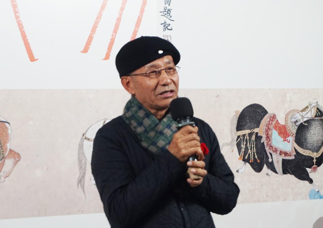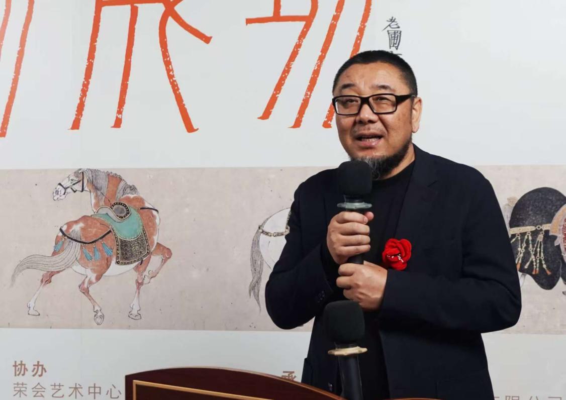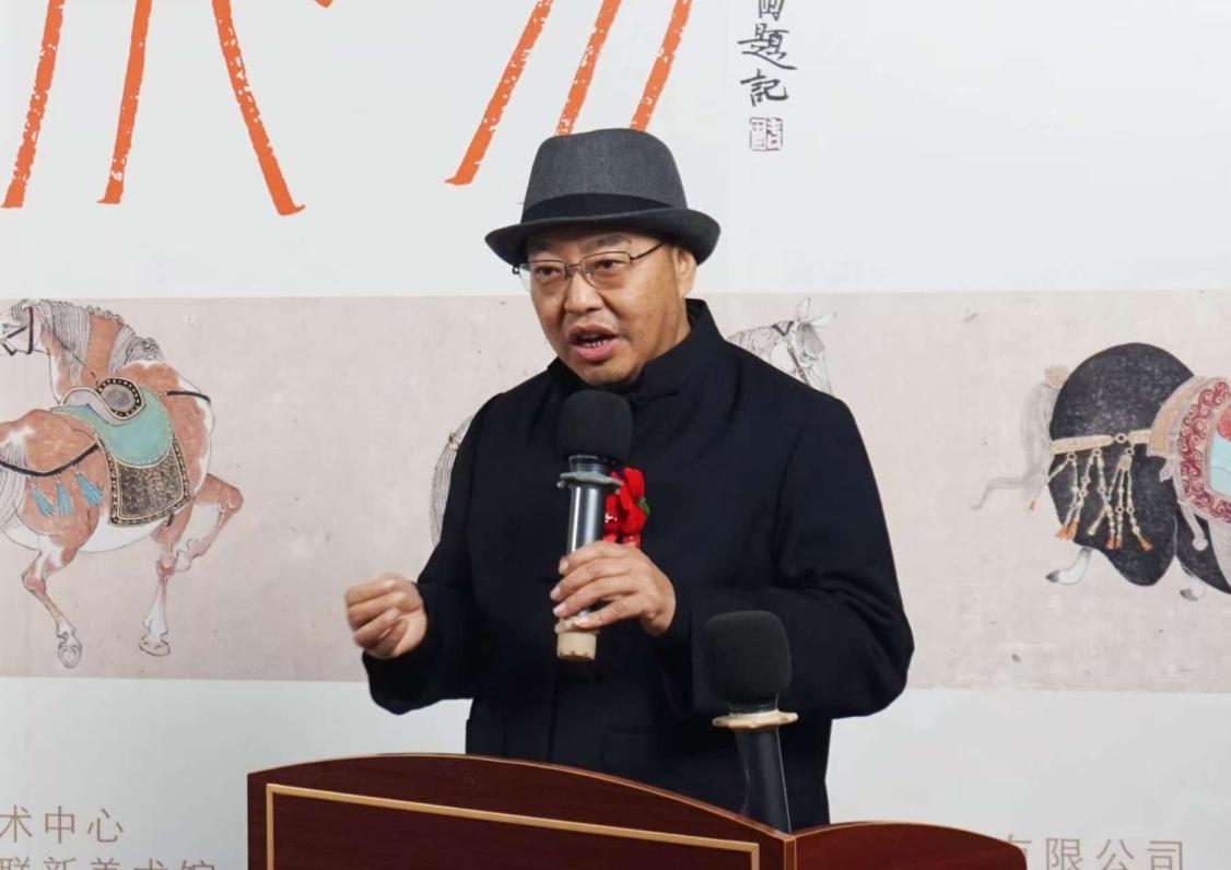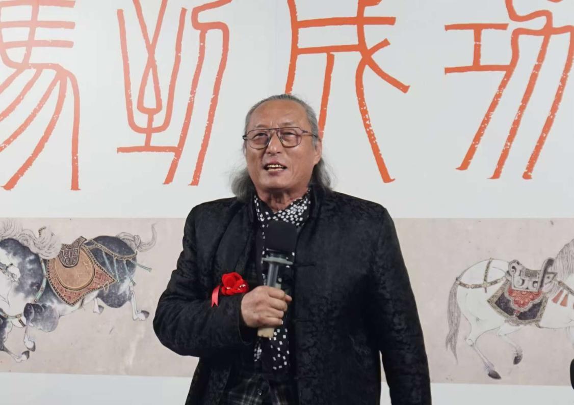 中国大众文化学会文艺人才专业委员会委员、中华诗词学会会员、老圃工作室画家王文涛致答谢词,向主办方、艺术机构、媒体及现场师友表达诚挚感谢。他谈到:“马,于我而言不仅是创作的题材,更是精神的寄托。我试图在笔墨间捕捉那份奔腾不息的生命力,以当代视角对话千年传统。”他表示,未来将继续“以笔为鞍,以墨为缰”,在传统深壤中深耕不辍,探索属于这个时代的视觉语言,不负各方厚望。
