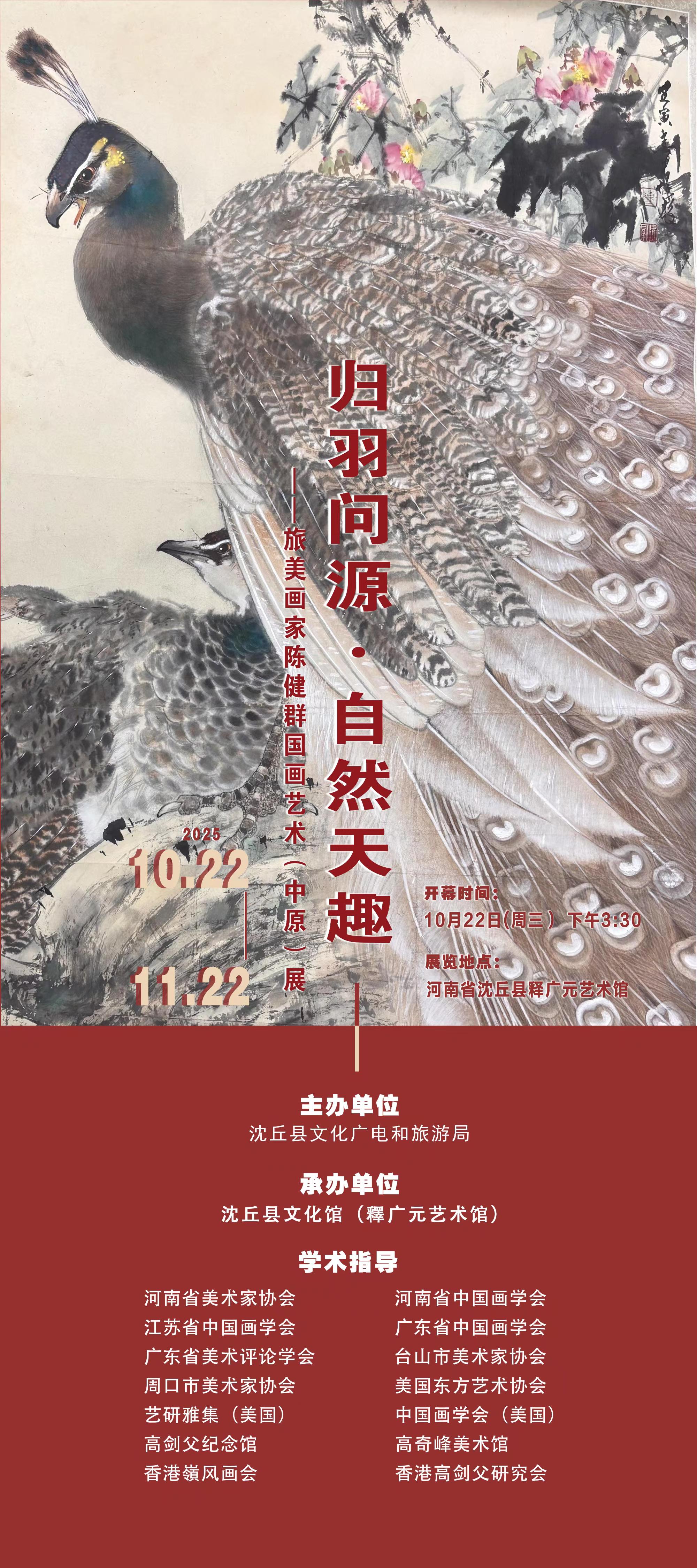 正如陈健群笔下的鸟儿终将归巢,他的艺术跨越重洋,落入中原沈丘的怀抱。岭南的细腻笔墨与北方的雄浑土地碰撞,催生出文化的新绿。中原,不是陈健群的出生地,却是哺育其艺术灵魂的文明之源。这场展览仿佛一场静默的对话,诉说着无论艺术之羽飞得多远,总有一根线与故土相连。当艺术跨越地域的界限,当创作穿越时空的隔阂,我们终将发现:所有艺术的归宿,都是向着文明源头的深情回望。