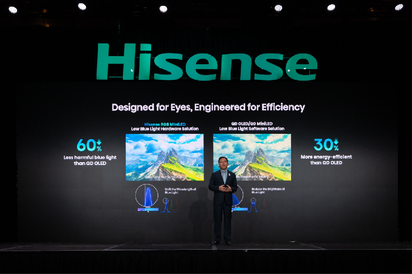 值得一提的是,光源和光色同控芯片的进化,让海信RGB-Mini LED实现了有害蓝光比QD-OLED降低60%,比传统QD-Mini LED降低75%,能耗降低30%,在拥有极致画质的同时,既是护眼先锋,也是节能标杆。
