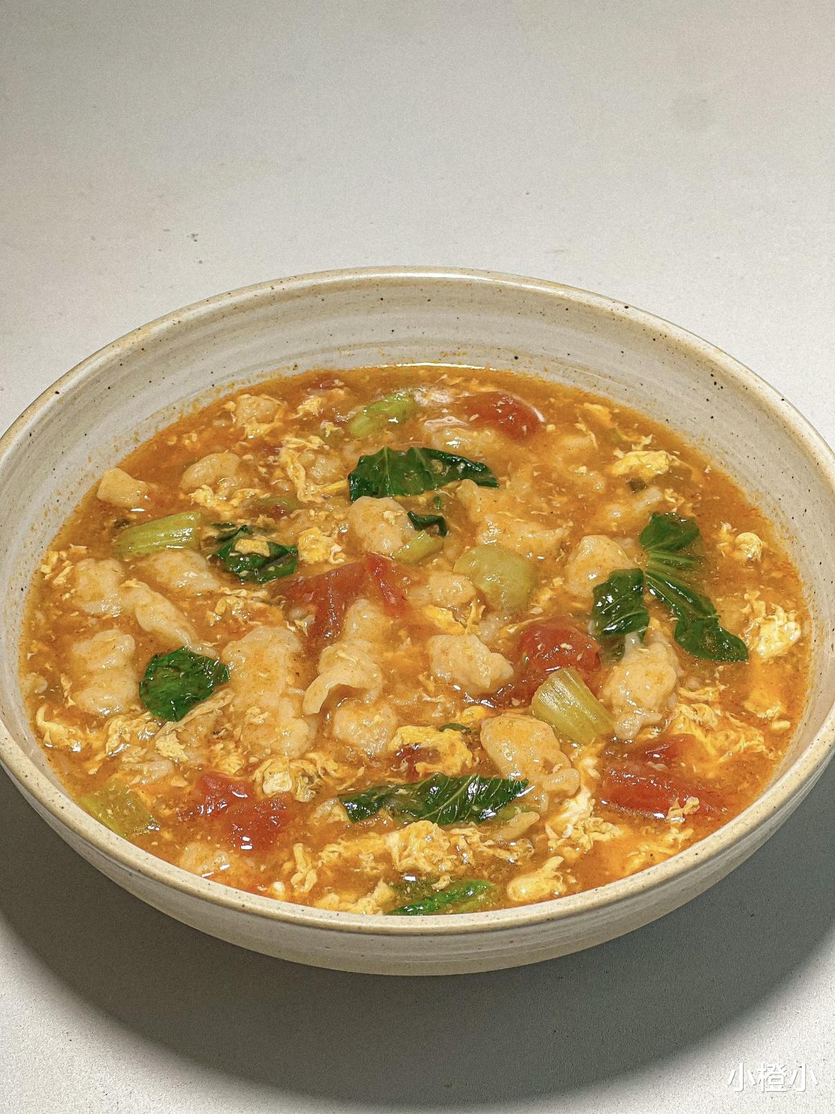 盛一碗冒着热气的疙瘩汤,先舀一勺送进嘴里——滑嫩的面疙瘩裹着酸甜浓汤,偶尔咬到爆浆的番茄籽,末了还有蛋花的绵软和青菜的清甜。老妈总说:"这汤啊,喝完从嗓子眼暖到脚后跟。"现在我把这个方子教给闺蜜,她家挑食的娃都能连喝两碗!