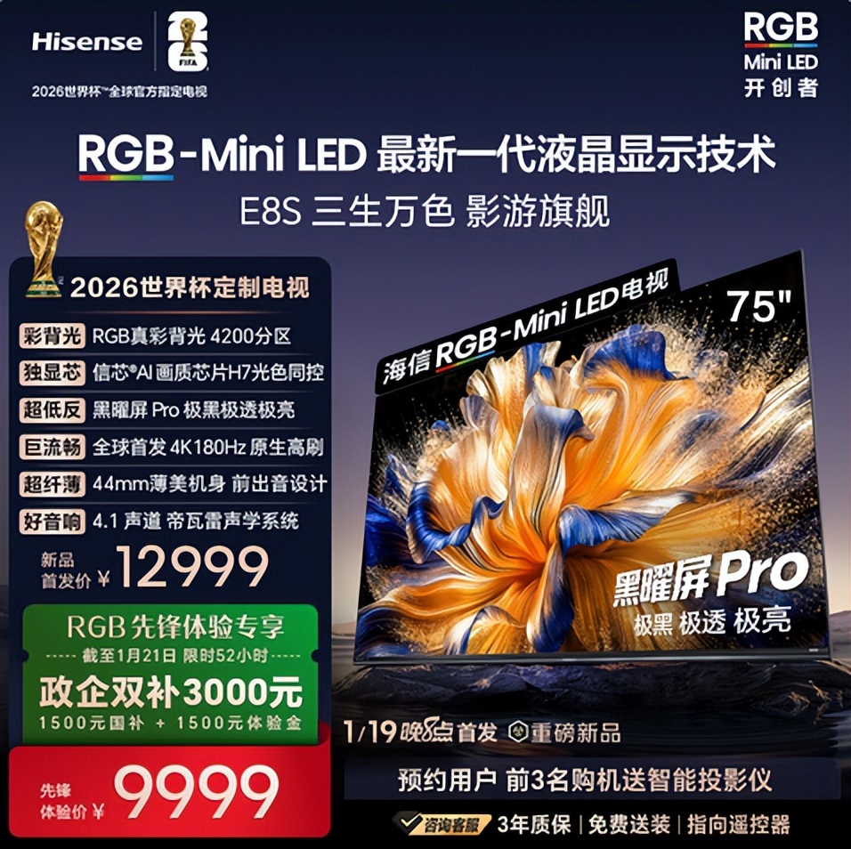 如果你也和我们一样,在选高端电视时纠结画质、功能、护眼等多个需求,真的可以直接冲海信E8S。它拥有75/85/100吋三个尺寸,能适配不同客厅空间,首发价9999 元起,这样兼具硬核实力与真香价格的全能旗舰,才是高端电视该有的样子,真心推荐给每一位追求品质影游体验的你!