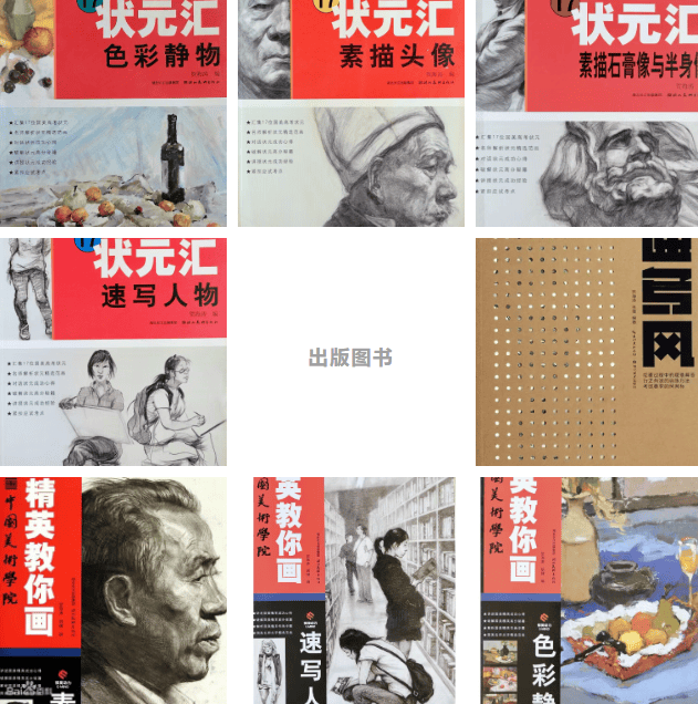 编著《中国美术学院专业考试前30名及优秀作品选 》素描头像卷、素描石膏卷、速写卷、色彩卷一、色彩卷二、吉林美术出版社出版