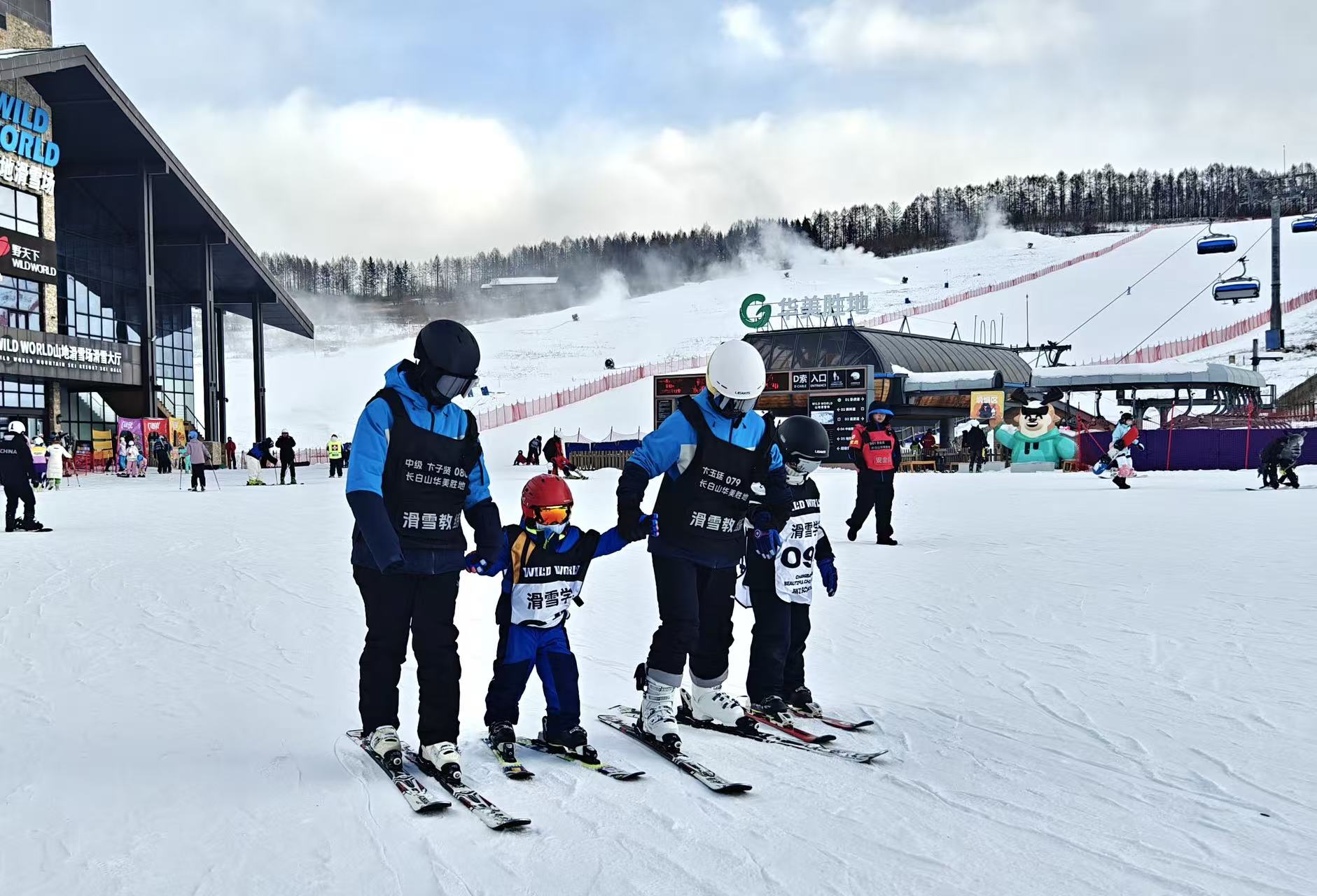 在长白山国际度假区、长白山华美胜地的滑雪场里,同学们在家长或专业教练的指导下,学习滑雪的基本动作与技巧。他们穿着五颜六色的雪服和护具,有的在学习穿卸雪板和滑雪姿势,笨拙的雪地行走显得十分可爱,但仍然一丝不苟,不放过任何一处细节;有的已经是滑雪“老手”,跟着家长从雪道上飘逸滑下,意犹未尽。雪假,孩子们按捺不住喜悦兴奋的心情,释放着活泼好动的天性。