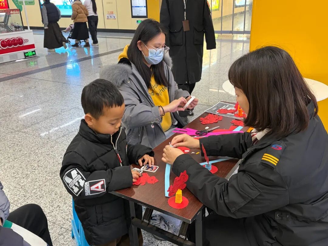 古楼站、时代广场站联合社区,将非遗糖画、磨刀理发等服务送到居民家门口;蠡口站携手社区开展“护航寒假时光”活动,将安全科普融入趣味手工。北斜步站通过设置市集、开展需求调研等形式,主动走进居民、商户之中,倾听心声,让地铁服务更贴近市民需求。