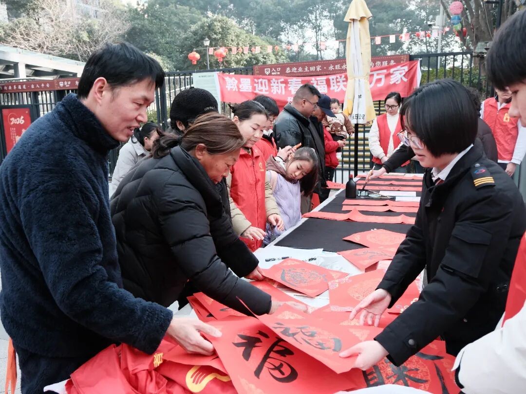 灵岩山站、金厍桥站、御窑站和积翠桥站等也纷纷开启“新春送福”模式,邀请书法家现场挥毫。此外,登云站、白洋湾公园站、花桥站以及东方之门站则携手社区或学校,将春联与福字送进千家万户,传递的是最质朴、最温暖的新春祈愿。