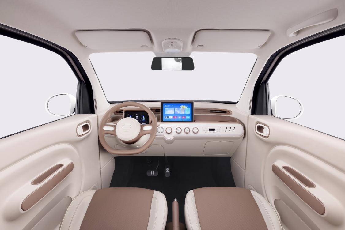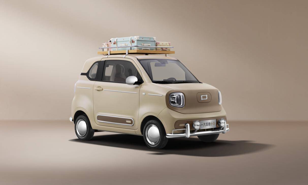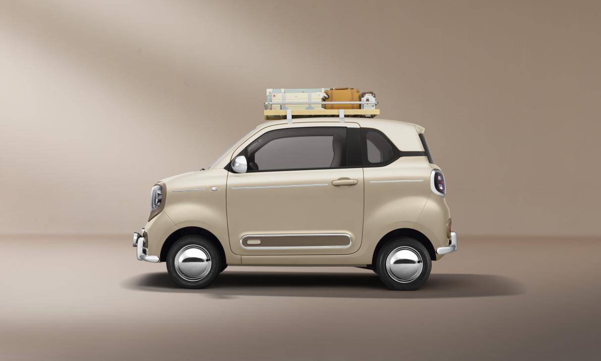 最明显的部分就是在外观上,除了奶咖双拼色以外,非常显眼的细节就是镀铬的前后杠,也是在向镀铬时代的老车致敬。而现在则代表了复古时尚的风格,再搭配圆润小巧的灯组和温暖的奶咖双拼色车身,让整车看起来更加的精致小巧。同时,镀铬的装饰也延伸至轮毂和尾灯框上,让整车设计协调。那另外一点和同级别车型有明显不同的就是车顶上的木质行李架,在这个级别的车型上一点都不多见,再加上它222km的纯电续航,日常城郊的短途出行,包括节假日露营,车顶的行李架上都可以打包一些露营装备,也代表了一种时尚的自由生活方式。