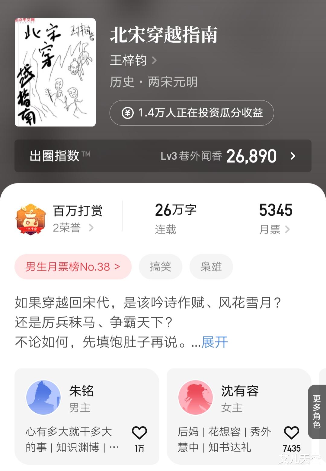 4、其他一些消息①扑街天线《我能召唤离谱伙伴》78万字,同人文,写完了魔改的斗气副本,小说均订八千四,倒是不低。