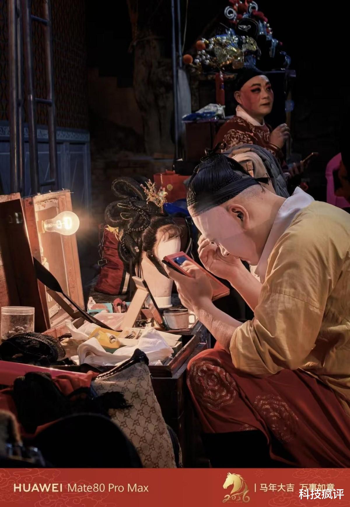 像下面这张照片,当时后台光线其实挺杂的,一边是化妆镜的暖光,一边是环境里的暗部,人又一直在动,如果用主摄拍,很容易把画面拍得有点乱。但换成长焦之后,视角一下就收紧了,注意力自然集中到演员的表情和动作上,背景被压缩之后反而显得更安静。过程中不需要反复调整,也能拍出非常具有故事感的照片。