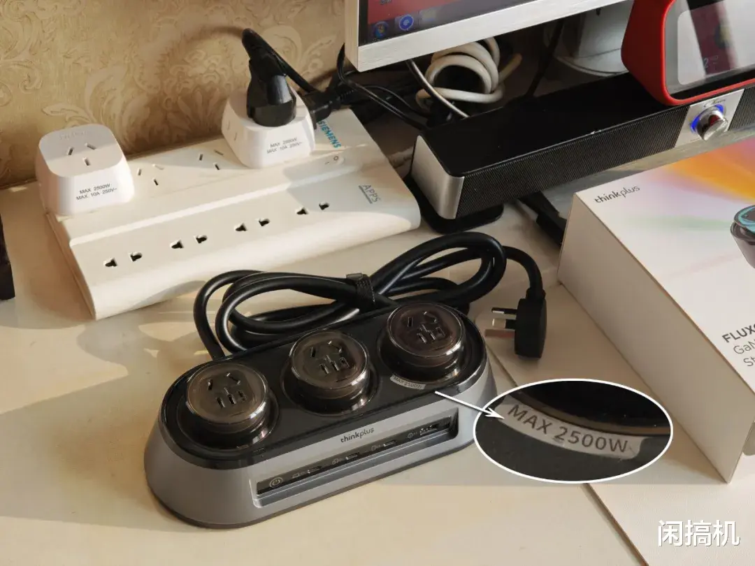 它虽然不便宜,但贵有贵的理由,颜值很高,情绪价值给到位。安全性也很强,三插孔+四小口足够了,可以疾速给全桌设备供/充电,避免充电头凌乱和线材缠绕,颜值控和强迫症都会喜欢!