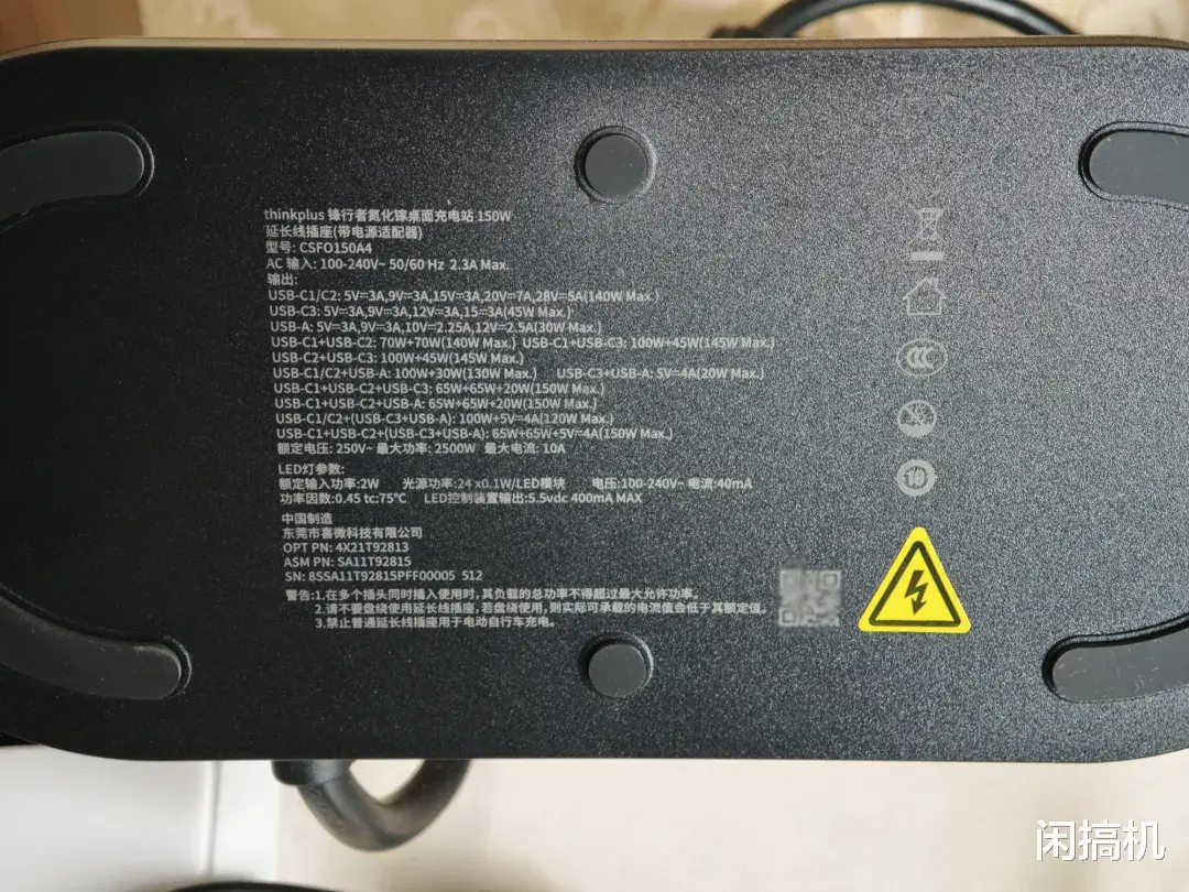 它全名叫做thinkplus锋行者氮化镓桌面充电站150W(简称“thinkplus桌面充电站”),可以同时给桌面所有大/中/小设备充电,150W基本达到了过去2年新出手机的最大功率。