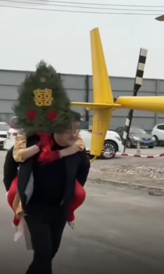 明显来看,背新娘的男子,明显是新娘的家人,而旁边灰色衣服男子,就是此次婚礼的主角新郎。