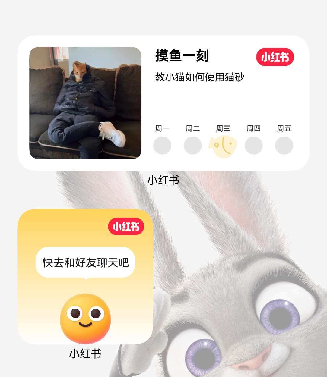 这几天体验下来,鸿蒙版小红书的卡片妥妥成为了我的“心头好”。尤其是“摸鱼一刻”卡片,简直是为本打工人量身定制!一只灵动的小鱼会直接游到卡片上,记录我当天的休闲状态,好像是在跟我说:“今天也辛苦你摸鱼啦!”