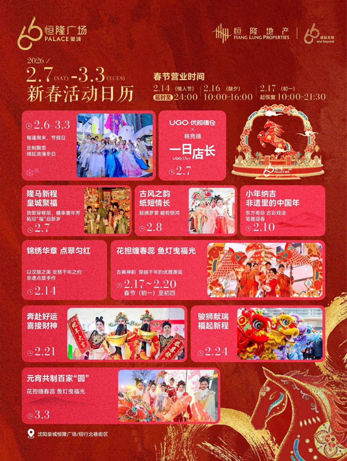 沈阳皇城恒隆广场“隆马新程”新春活动日历