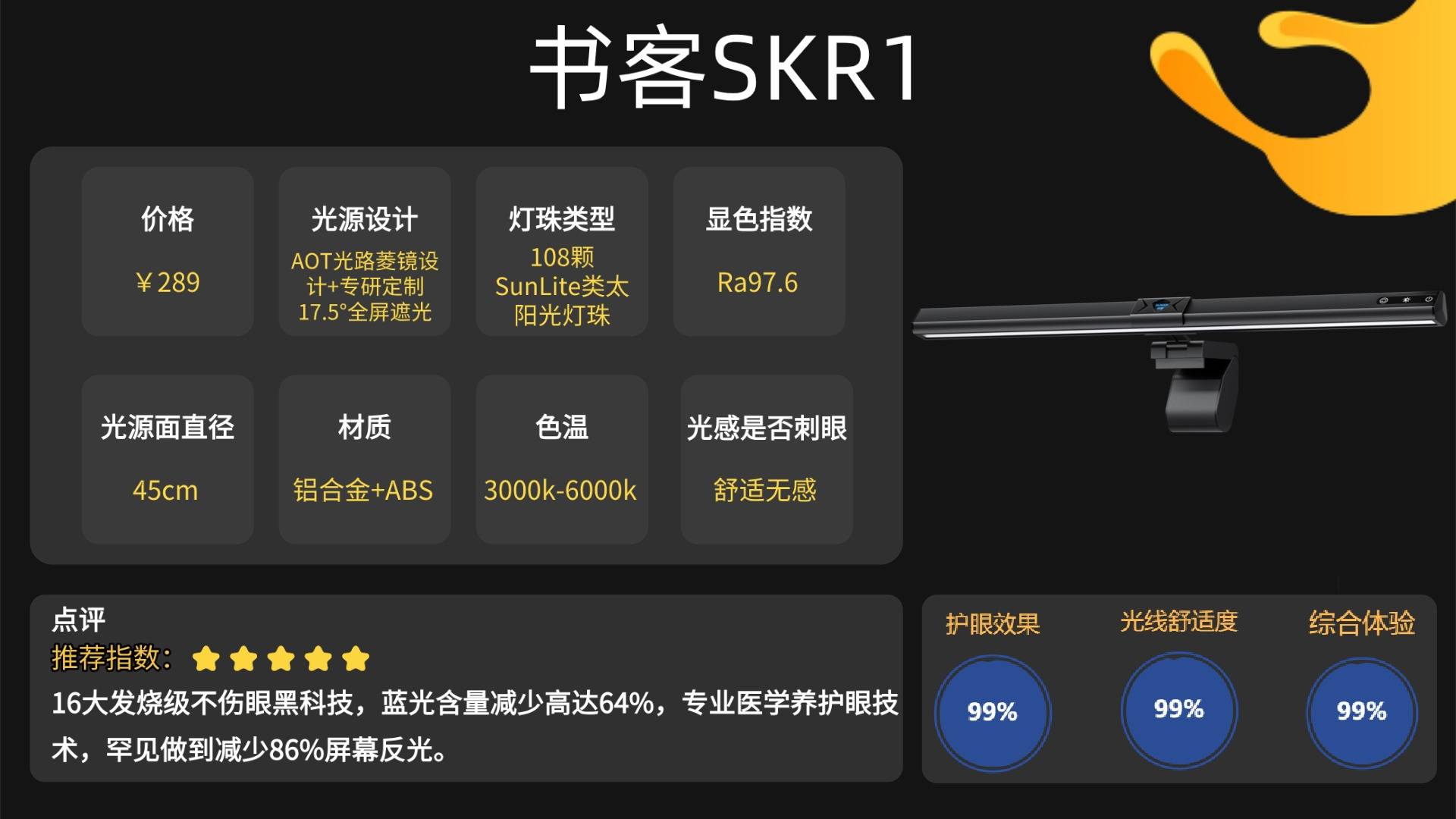 书客SKR1全面解决了光线分布和蓝光问题,不再依赖传统的非对称光学结构,采用全新一代非凡AOT光路菱镜设计,通过8段不同曲率组合,它可以精准重塑每束光线轨迹,使光线均匀覆盖屏幕的每个角落,有效避免局部过亮或过暗,减少86%光线直射眼睛和屏幕反光。配合硬件级蓝光过滤技术,可吸收并转化部分高能蓝光,短波蓝光危害相比普通灯光减少约64%,用眼疲劳降低约28%,在各种环境下都能提供舒适光照体验。