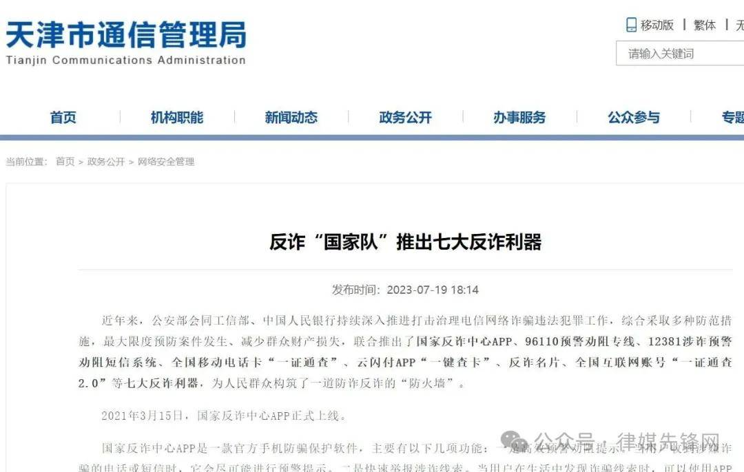 以国家反诈中心APP为代表,与96110预警劝阻专线、12381涉诈预警劝阻短信系统、全国移动电话卡“一证通查”、云闪付APP“一键查卡”、反诈名片、全国互联网账号“一证通查2.0”等,共同组成国版“七大反诈利器”。这套组合拳,大有不普及到人手一个、不消灭反诈誓不罢休之势。