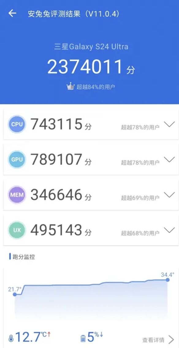 三星S24 Ultra的性能简直开挂!用的骁龙8 Gen3定制芯片,玩《原神》开全高画质,帧率稳得像直线。12G内存+256G起步存储,我试过同时开25个APP,切来切去跟翻书一样快,后台挂再多也不杀进程。最爽的是存东西超快,4K视频导入导出比以前快一大截,20G的素材几秒钟就搞定。而且它还挺聪明的,打游戏时自动调成高性能模式,风扇跟着转;刷微博看视频就省电运行,很懂按需分配。实测跑分超过230万,这性能现在安卓机里没对手!