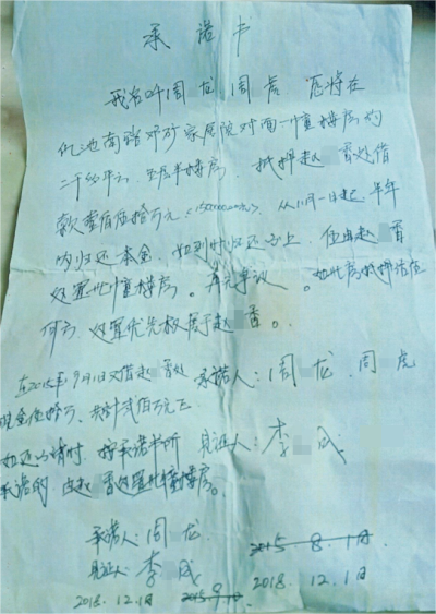 2015 年 5 月,在党某贤等人的多重威逼下,周某龙全家被强行带至西和县中山原某服装厂后院的办公地点,毫无反抗余地被迫签下房屋转让协议。周某龙回忆,自己位于西和县白冯街的六层自建楼遭强行抵债 —— 这栋楼面积约 700 平方米,包含六间门面房,却被对方以每平方米3000多元的极低价格,硬生生抵扣了高利贷虚高滚存的本息。