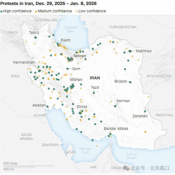 相比委内瑞拉,伊朗抗议活动持续14天,伊朗全国均已波及。