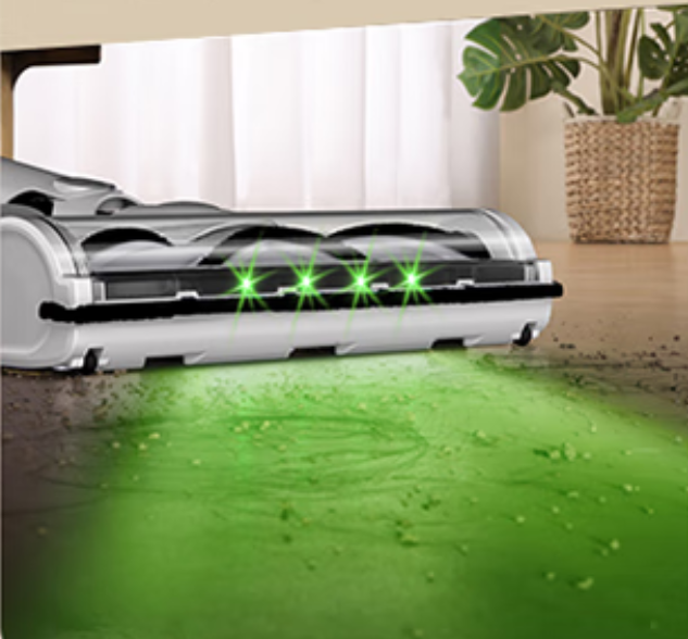细节体验上,配备120°广角绿光显尘系统,精准照亮普通光线难以发现的微尘与毛发,提升清洁效率。机身结合多轮力学仿真与重心调校,手持更轻便,长时间或高举操作手腕压力小,单手使用无负担。此外,1.2L超大容量尘杯支持一次性容纳整屋灰尘,减少频繁倾倒的麻烦。全场景吸头组合覆盖地板、地毯、缝隙、高处等多种需求,配备专为养宠设计的吸毛刷,快拆结构更便于灵活更换,应对各种复杂清洁场景更从容。