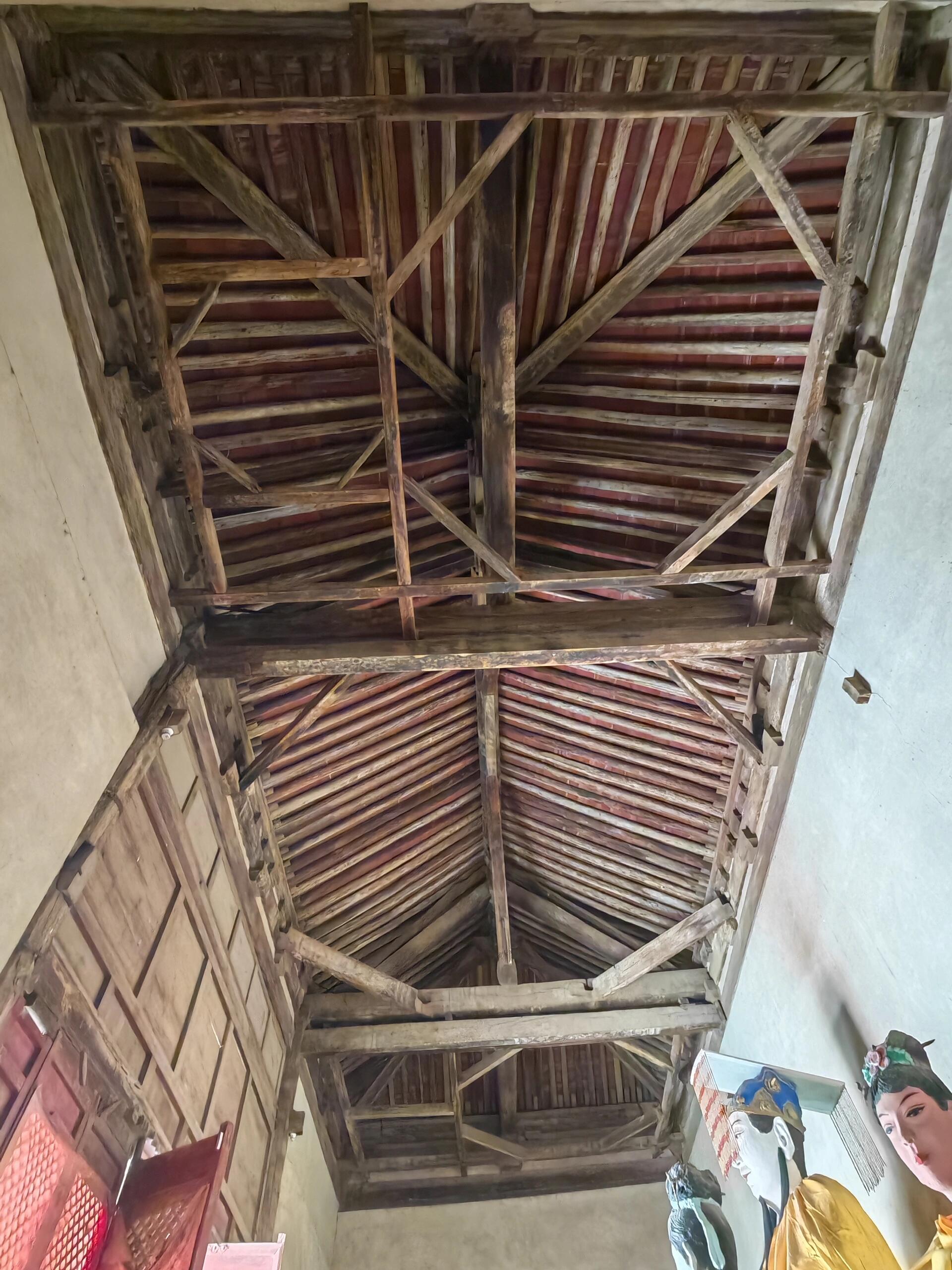 推开稷王庙斑驳的木门,最先撞入眼帘的就是大殿那座巍峨的庑殿顶。在中国古代建筑的屋顶等级里,庑殿顶是最高规格的形制,只有皇宫、太庙、孔庙这类皇家与圣人祭祀建筑才能使用,寻常庙宇根本无权采用。这座大殿的庑殿顶坡度舒缓,檐角微微上翘却不张扬,不像明清建筑那样追求凌厉的曲线,反而透着一股北宋文人式的沉稳。仔细看会发现,屋顶的椽子排列得格外规整,每一根的间距几乎完全相等,木材的纹理在岁月里泛出深褐色的光泽,凑近还能闻到淡淡的樟木香气——这是北宋工匠对木材选择的苛刻,只有质地坚硬、防虫蛀的良材,才能扛住近千年的风雨。
