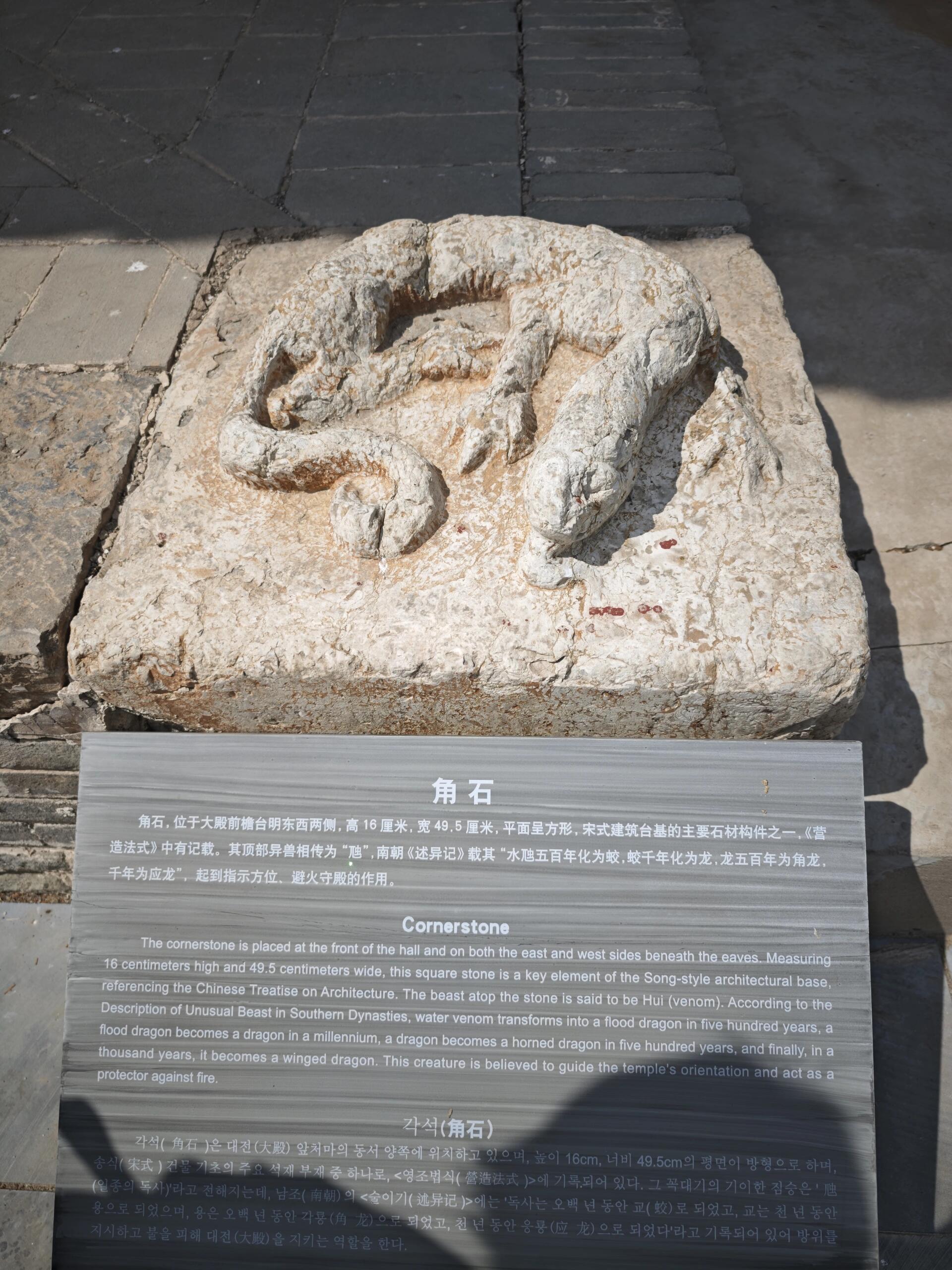 但这个说法被《山西古建筑地图》推翻了。这本书里明确记载,这根盘龙石柱是明代万历年间修缮大殿时更换的。支持这个观点的人认为,石柱上的龙纹风格更接近明代:明代龙纹的龙角多为“鹿角形”,龙鳞排列整齐如鱼鳞,而唐代龙纹的龙角多为“牛角形”,龙鳞更显粗犷。仔细对比会发现,这根石柱上的龙角正是典型的明代鹿角形,龙鳞的雕刻也更为规整,与唐代龙纹的风格差异明显。可反对者却反驳:明代修缮为何要单独更换一根石柱?而且选择汉白玉材质,与其他木柱的材质格格不入,这不符合明代修缮“修旧如旧”的原则。更有人提出,或许这根石柱的龙纹是明代在唐代石柱上重新雕刻的,既有唐代的柱体,又有明代的纹饰,这种“跨时代”的遗存,让争议变得更加复杂。