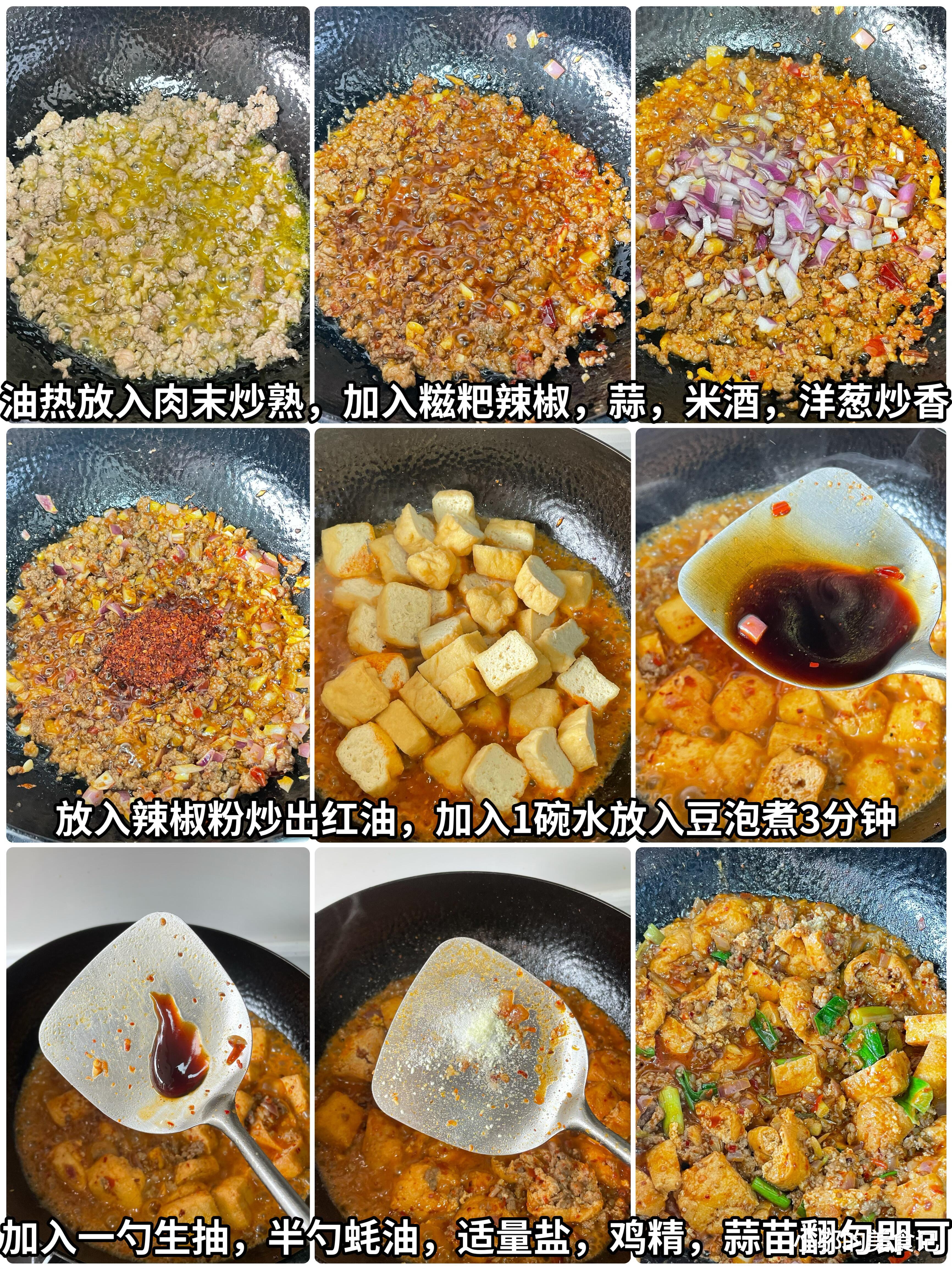 处理肉沫。锅里倒油,烧至五成热(油面平静但微微发烫),放入肉沫用铲子快速划散。开中小火慢慢炒,直到肉沫变成金黄色,逼出油脂,这一步叫“炼香”,能让肉沫的香味更浓郁。看到肉沫边缘微焦时,加入1勺糍粑辣椒、蒜末和洋葱丁,继续翻炒1分钟,直到洋葱变软,辣椒的红油渗出。这时候沿着锅边淋1勺米酒,既能去腥增香,又能让肉沫更松散。
