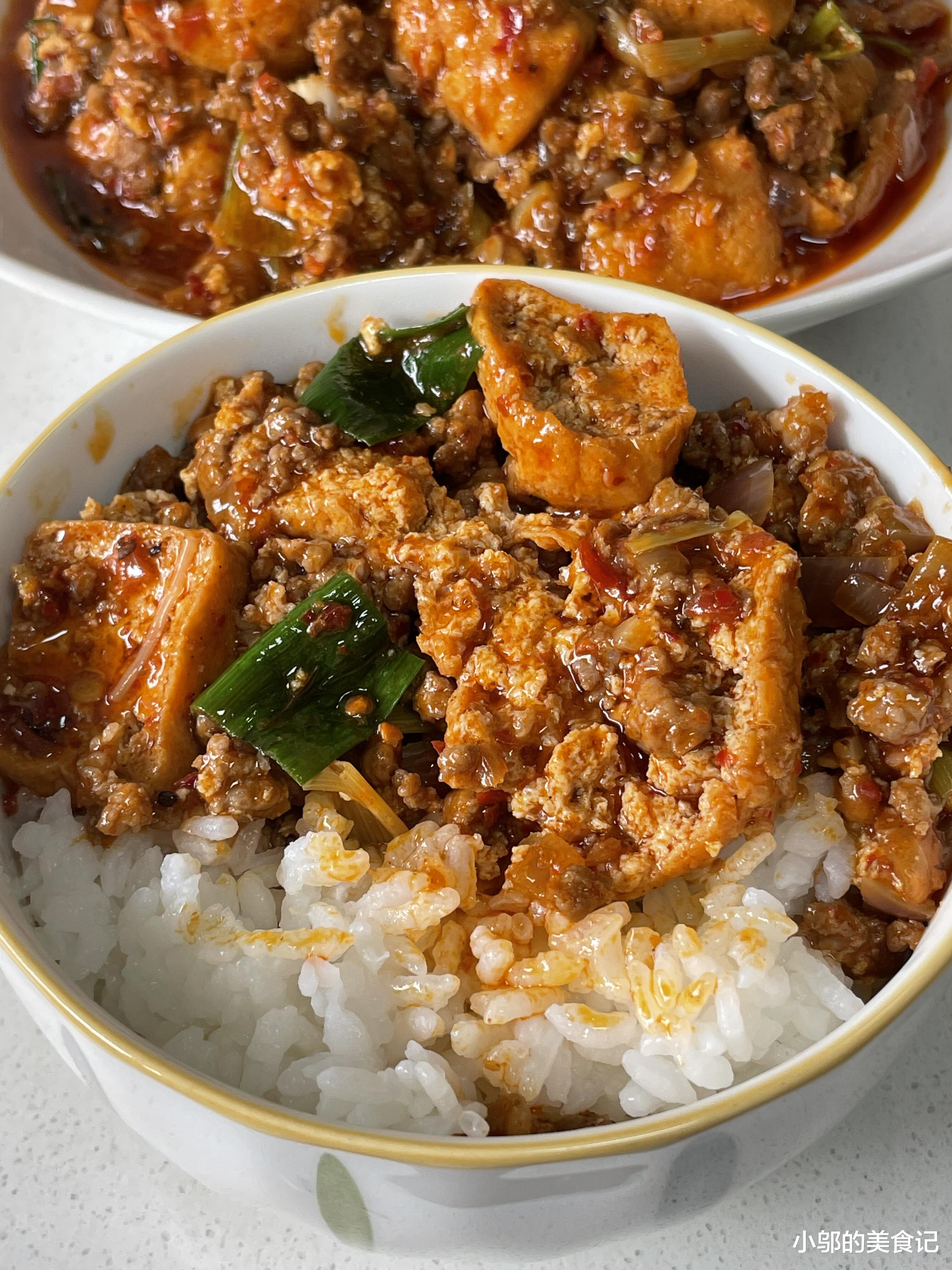 夹起一块油豆泡,轻轻咬开,滚烫的酱汁立刻在嘴里爆开,肉沫的咸香、洋葱的微甜、辣椒的鲜辣层层递进,油豆泡的外皮带着嚼劲,内部却软嫩入味。肉沫被酱汁裹着,每一粒都鲜香十足,和米饭拌在一起,根本停不下来。尤其是锅底的那点汤汁,混着蒜苗的清香,简直是“饭扫光”的终极武器,连平时不爱吃饭的孩子都能主动添第二碗。