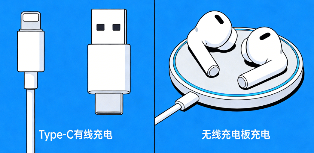 头戴式耳机主要有Type-C有线充电和无线充电两种方式。Type-C充电效率高、兼容性强,适合出行应急;无线充电便捷省心、无需插拔,但功率低、速度慢。经常外出、注重续航可优先选支持快充的Type-C机型,追求日常便捷则可选择无线充电款。