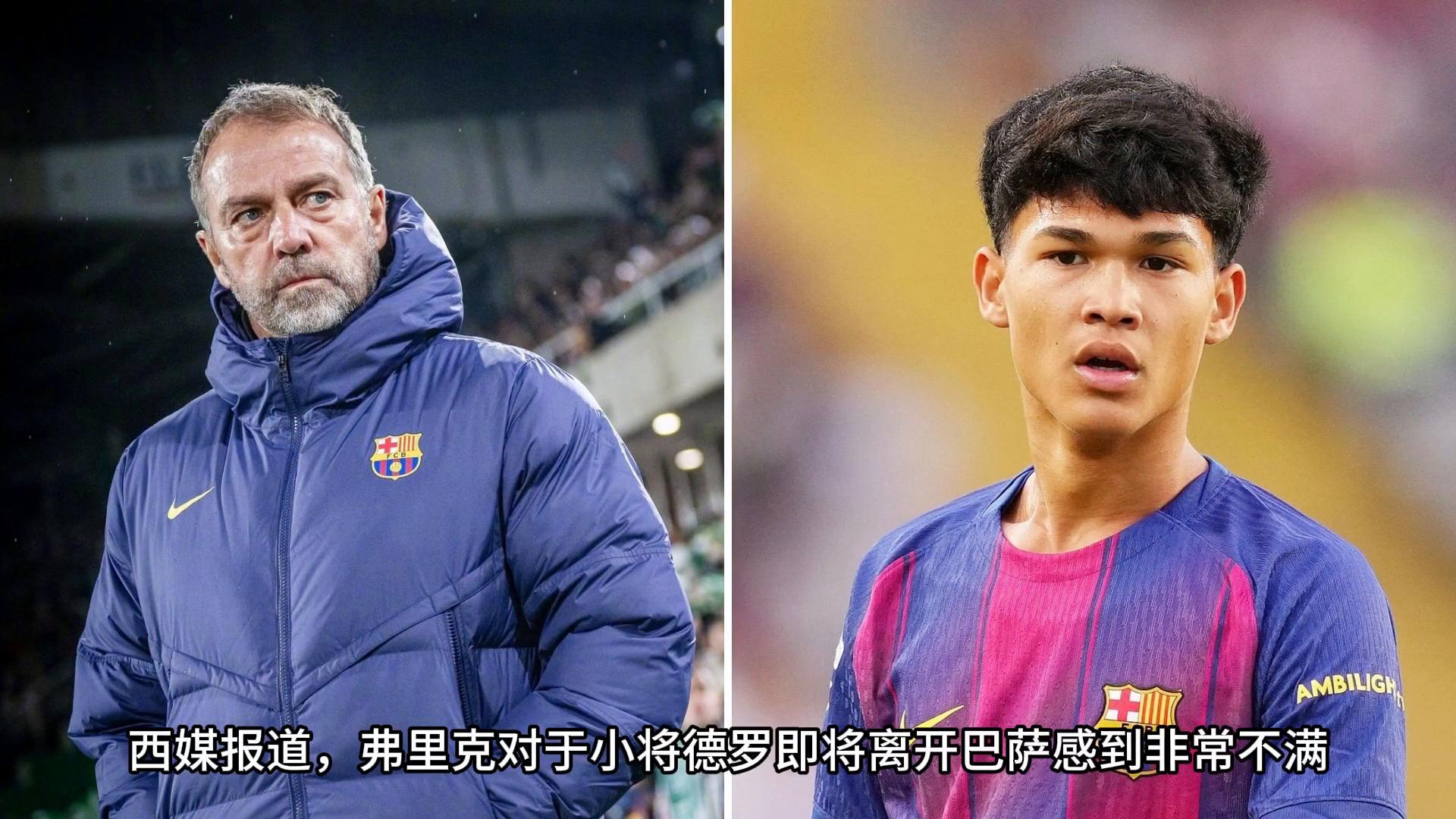 ·西媒报道,弗里克对于小将德罗即将离开巴萨感到非常不满,甚至向身边的人表示这是他人生中"遭遇过的最大失望"。