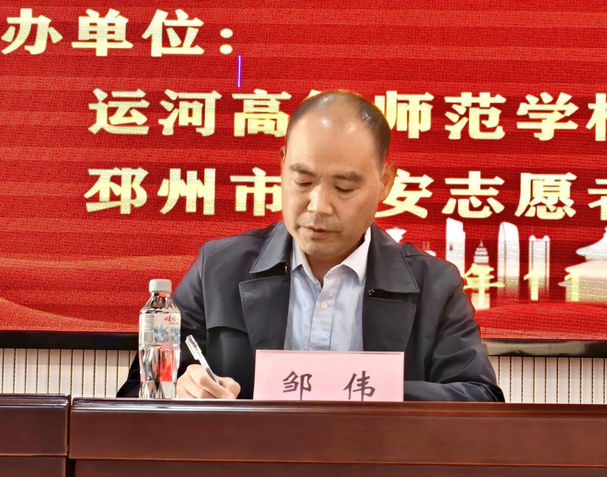 运河高等师范学校、邳州市委政法委、邳州市平安志愿者协会于2025年11月20日下午,在运河高等师范学校行政办公楼七楼报告厅举办“与人生对话-我的中国梦”爱国主义主题报告会。运河高等师范学校党委委员、副校长汤秋,政法委副书记邹伟、运师学工处处长毛贵阳以及200多名师生代表、部分平安志愿者代表参加了报告会。江苏华兴激光科技有限公司总经理、邳州市平安志愿者协会华兴激光分会会长、江苏省政协委员、徐州市劳动模范、徐州市优秀平安志愿者、徐州市人大代表、徐州市团市委副书记、中国芯片专家罗帅博士;全国优秀信访工作者、徐州市最美平安志愿者、邳州市平安志愿者协会负责人李昂;分别给大家作“从放牛娃到科技产业报国之路”“以英雄人物为榜样,努力学习,奋发向上”的报告,深入浅出的为大家诠释了做人、做事、做学问的真谛,鼓励运师学子要紧跟时代步伐,努力去践行“老老实实做人,勤勤恳恳做事,认认真真做学问,追寻终极目标,实现自己的人生价值。”