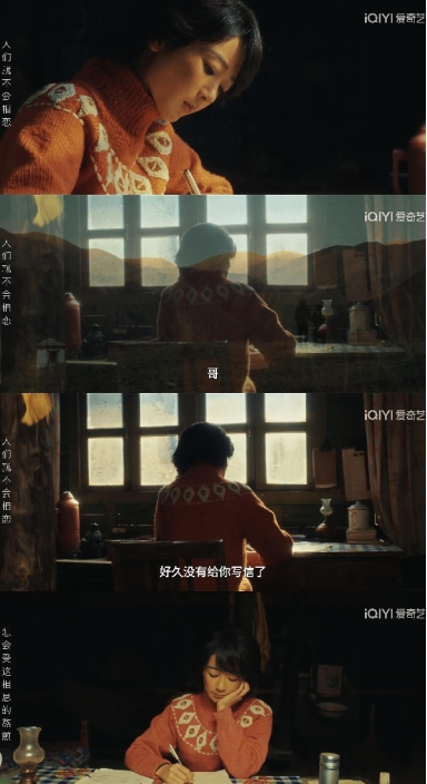 可偏偏是这样两个人,靠着一封封的信件,把家里的情况、自己的所见所闻,都写成了文字,汇聚成了里心照不宣的牵挂。白椿甚至从未正式露面,仅凭一面与白菊书信中语言就稳稳走进了观众心里。原来真正的情意,从来不需要登场,只需在字里行间落下一粒种子,就能在看客心中长成一片森林。