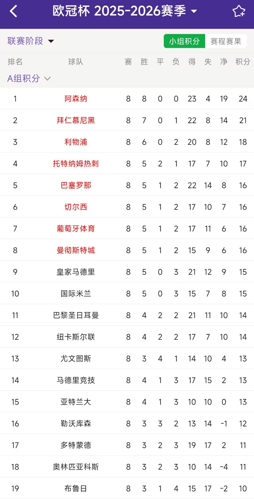 其中,阿森纳凭借联赛阶段排名第一的成绩,确保只要继续晋级,后续所有轮次的次回合都将在主场进行,这无疑是巨大优势。