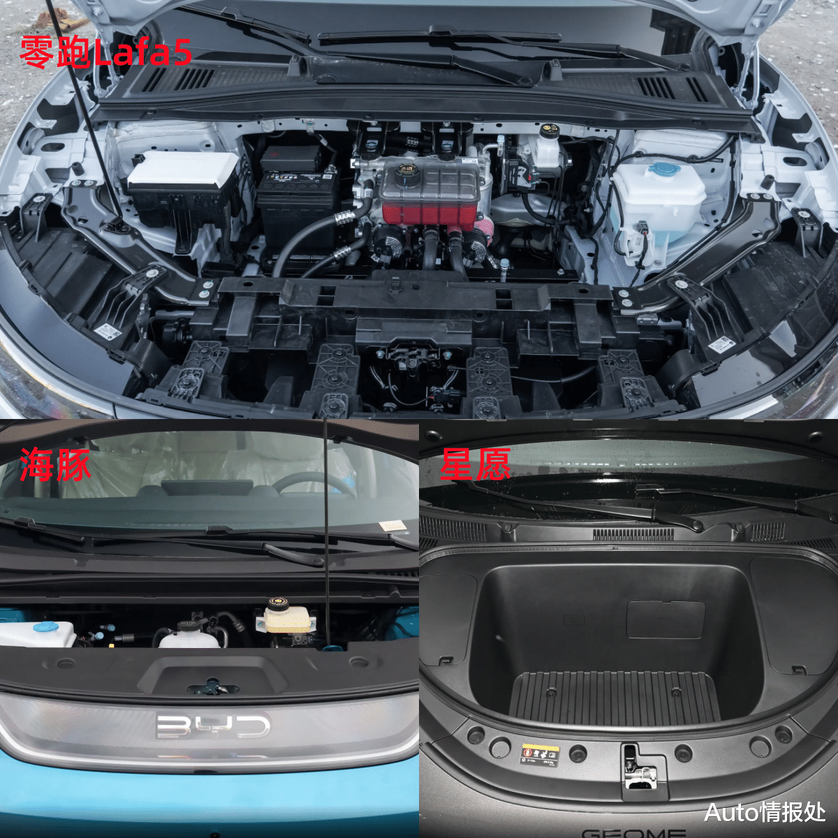 对于一台新能源车型,我想你最关心的包括续航和动力方面,三款车型均搭载单电机,但核心表现还是有着一些差异化的,零跑Lafa5达到了218马力,续航里程为515公里,快充时间也只有0.3小时,海豚为177马力,星愿为116马力,续航里程为410公里和401公里,快充时间为0.42小时和0.35小时。