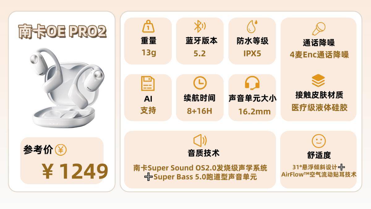作为业内公认的“不入耳开放式耳机”的技术先锋者!南卡对于旗下产品的音质品质要求也是非常高的,通过软硬件结合的方式,让音质有了质的提升!搭载了自研Super Bass 5.0跑道型高性能声音单元、OS 2.0发烧级声学系统以及6+3维传感空间音频技术,,对比同价位的竞品,其声音保真度达到了99.9%!并且在低音表现、声音清晰度等核心维度上,均是千元内最出色的。