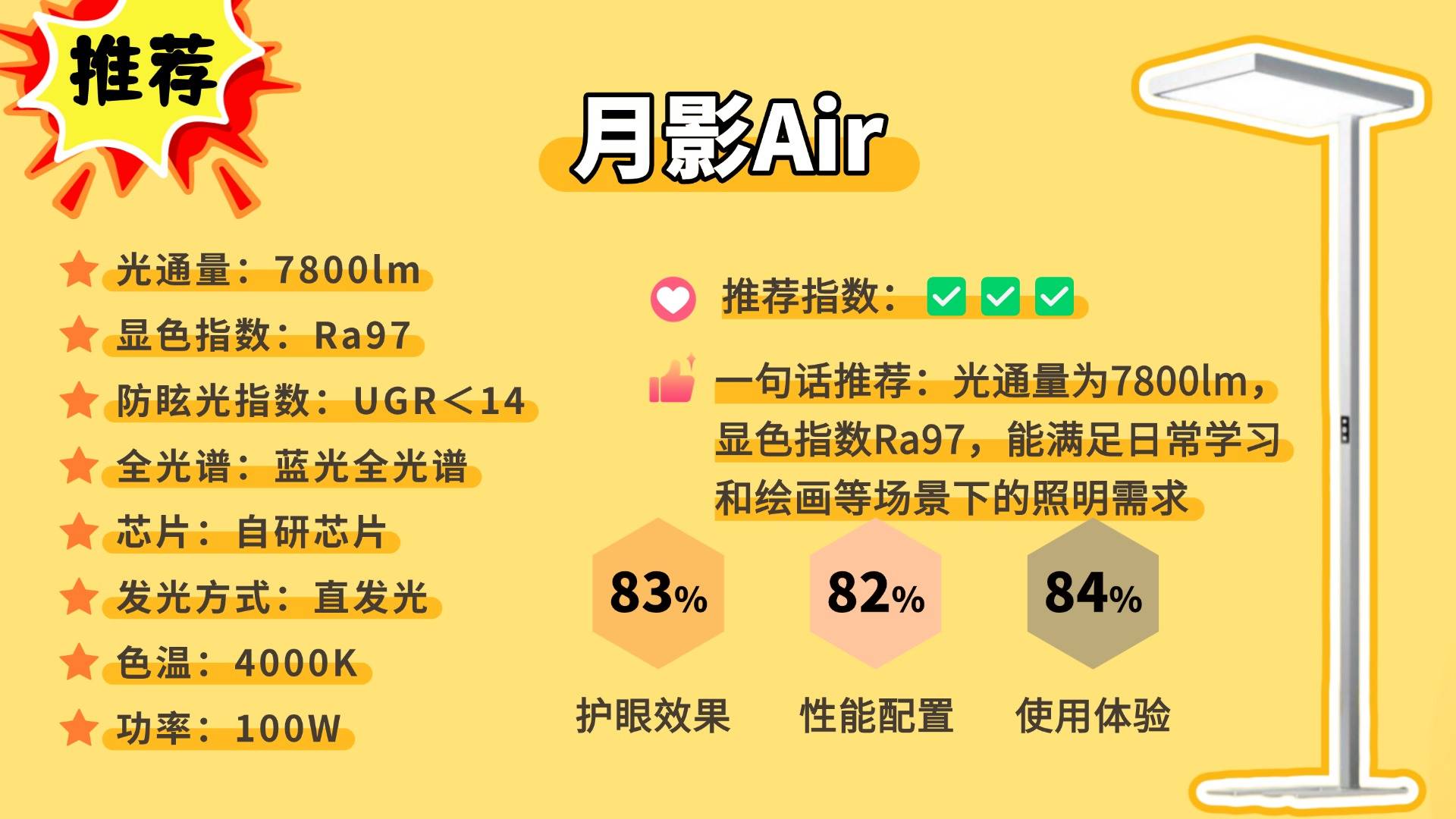 什么牌子的大路灯护眼好用又便宜?月影 Air属于品牌中偏入门定位的一款产品,整体采用一体化发光面结构,内部配置了448颗全光谱灯珠,并通过高密度微菱晶扩散板对光线进行二次处理,实际点亮后空间亮度充足,光线分布也比较均匀,另外,灯体底座仅1cm厚,实测可以直接推进大多数书桌下方,对空间占用控制得比较到位,不过由于采用直射式出光方案,光感偏强,部分场景下可能会出现轻微眩光。