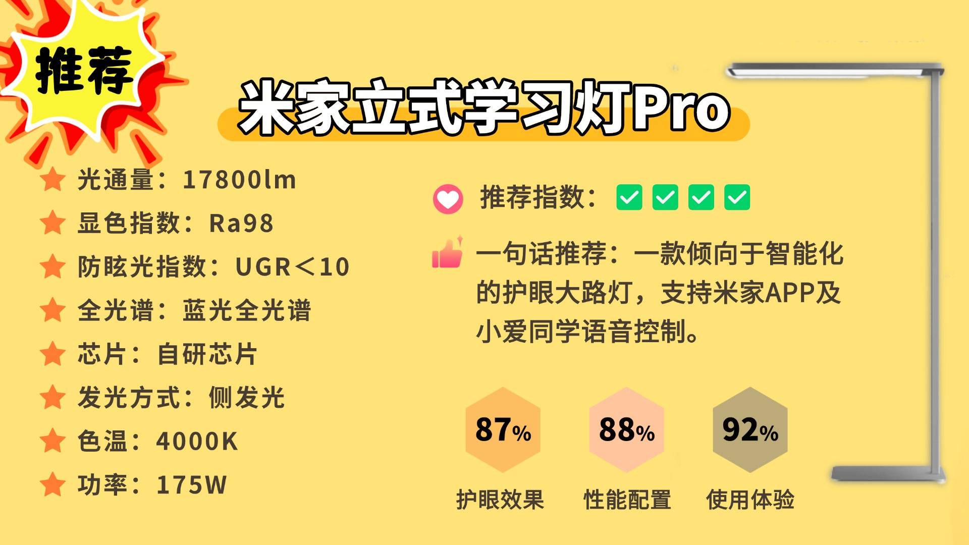 护眼性能:光线明亮且具备Ra98以上的显色指数。