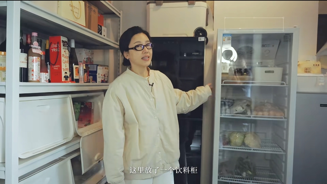 除了衣服外,这个储藏室里还放着一些厨房的油烟调料还有零食饮料,甚至冰柜还有洗衣机都放在了这里,杨子姗在上海租的新房应该离这个毛坯储藏间很近,估计就是对门的距离,空间虽然不大,但放杂物确实也够了。