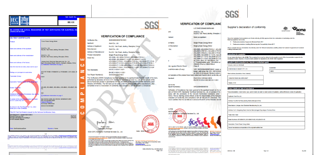 :通过 CB、CE、UL、RCM、MID 等多项国际认证,符合 IEC 61010、IEC 61326 等国际标准,经 - 40℃~70℃宽温度范围测试,能适应复杂环境,保障长期稳定运行。
