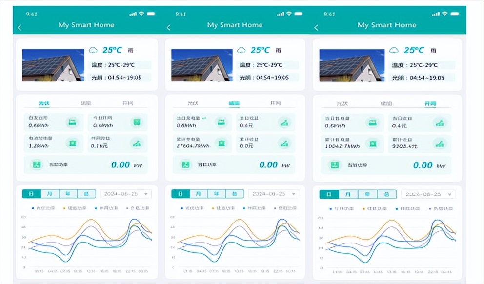 实时展示光伏发电量、储能充放电量、负载用电量、电网交互电量等核心数据,自动生成日 / 月 / 年能源报表与综合收益报表,清晰呈现能源消费结构、峰谷用电情况及收益明细,还能统计减排 CO₂、节约标煤等环保贡献数据,让用户直观掌握能源利用情况。