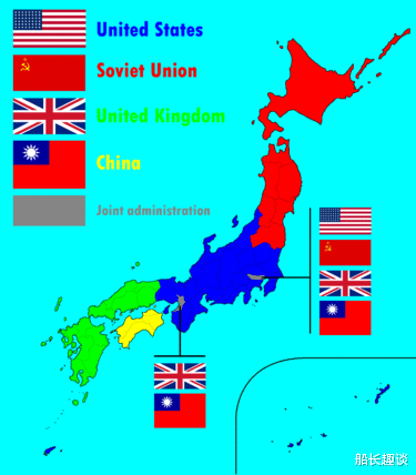 原本同盟国曾打算依循德国模式,由美、英、苏、中四国分区军事占领倭奴,然而中国爆发内战,美苏爆发冷战,使得倭奴只被美国占领,而驻倭美军总司令麦克阿瑟也未能废除倭王。