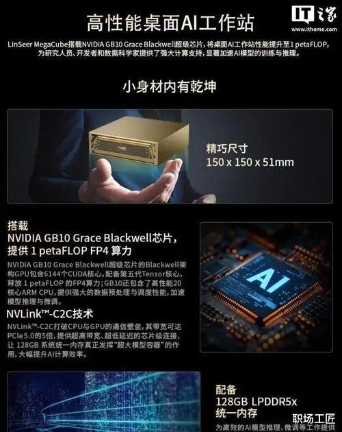 IT之家12月9日消息,新华三H3C推出了一款名为LinSeer MegaCube的桌面AI超算工作站。这款工作站通体金色,配备英伟达GB10 Grace Blackwell芯片,提供1 petaFLOP FP4算力,售价36999元。