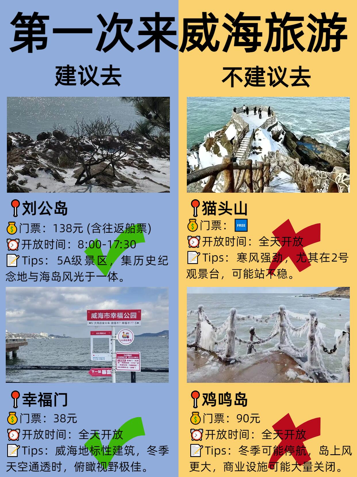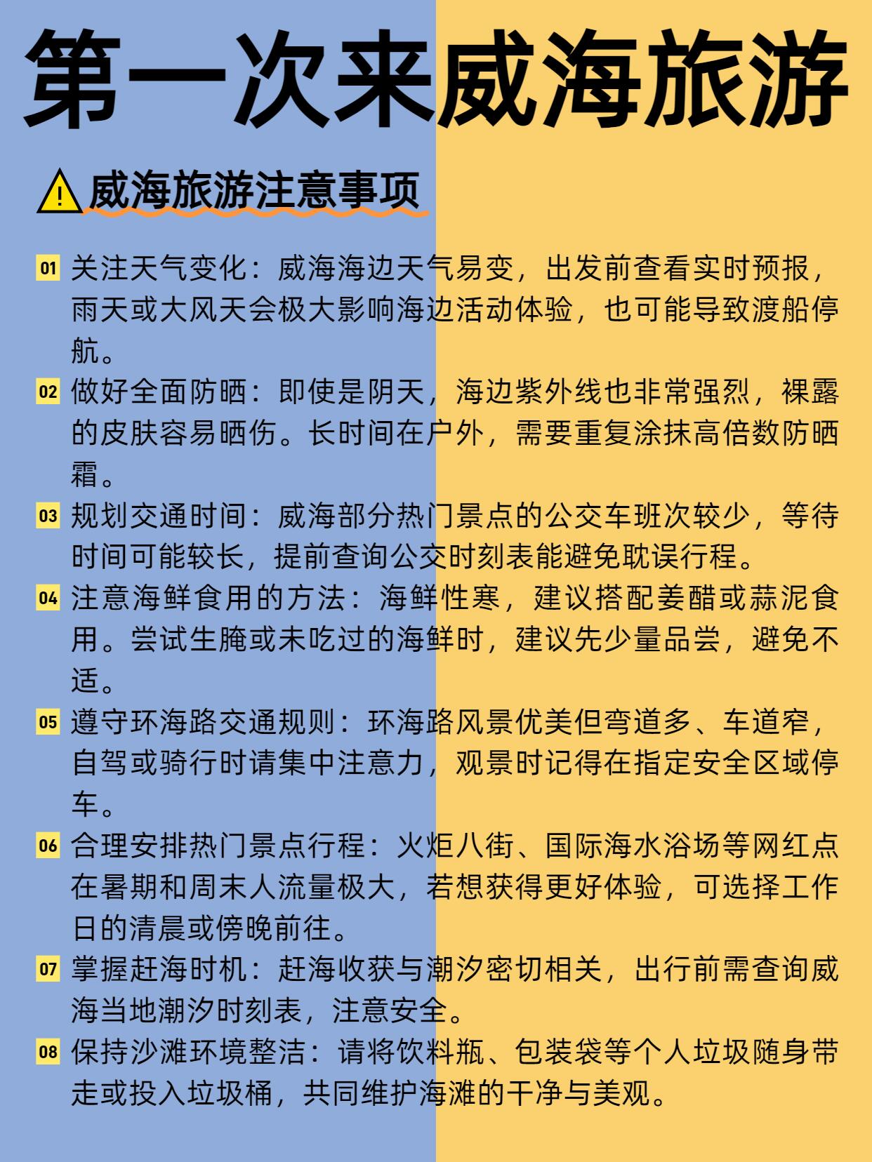 威海风大,尤其海边,帽子围巾一定备好。