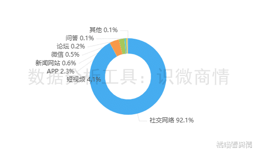 该时段内,有关“vivo直播间置顶性别评论争议事件”的舆情主要集中在社交网络平台,约占92.1%,其次为短视频(约占4.1%),新闻APP(约占2.3%)。
